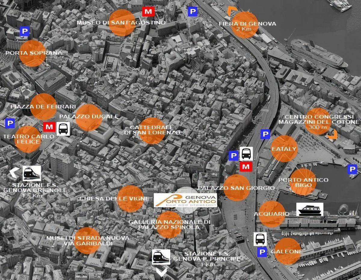 Genova Porto Antico Boutique Rooms si trova in Piazza Banchi, nella parte più affascinante e antica del centro storico della città (zona pedonale), a breve distanza dal Porto Antico e dal centro congressi Magazzini del Cotone.